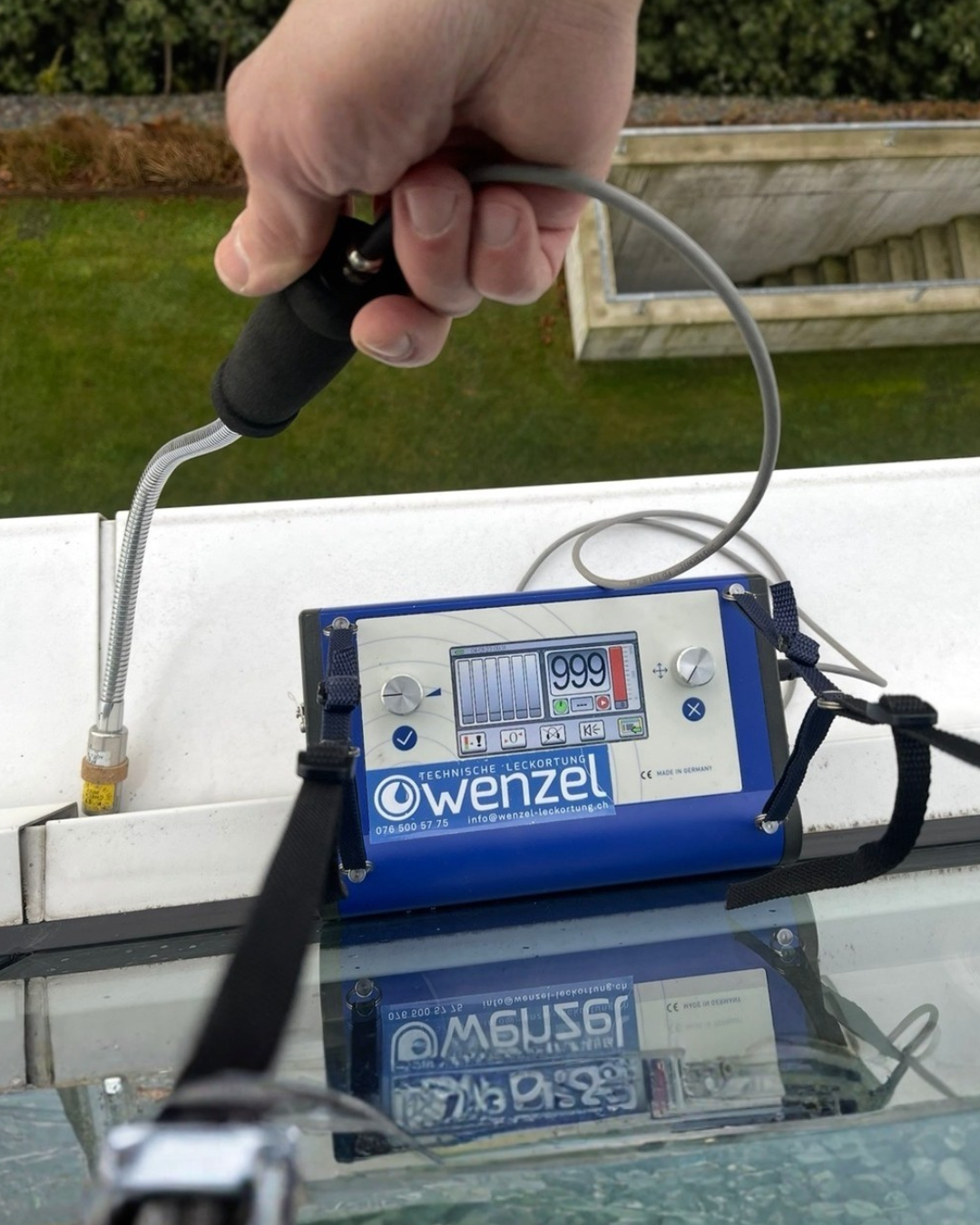 Mit hochsensiblen Messgeräten wird das austretende Gas punktgenau lokalisiert – unabhängig davon, ob es sich um eine grosse oder eine kaum sichtbare Leckage handelt. Dieses Verfahren ist besonders effektiv, wenn andere Methoden aufgrund der Bauweise oder Materialbeschaffenheit an ihre Grenzen stossen.